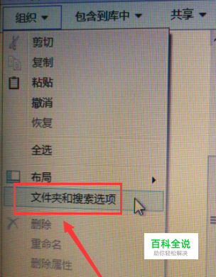就会弹出菜单选项,选择文件夹和搜索选项进去