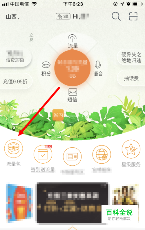 首先还是要在手机上打开并登录电信营业厅App,并在首页面点击流量包。