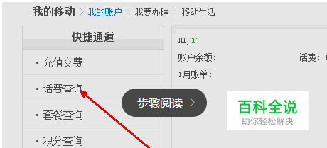 登陆账号的时候,为了确保是本人在操作,通常都会向手机中发送一个验证码,登陆后的服务页面中,有一个话费查询的选项,点击此选项。