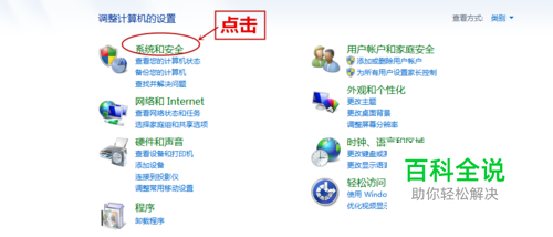 打开“控制面板",在控制面板页面中,点击”系统的安全"
