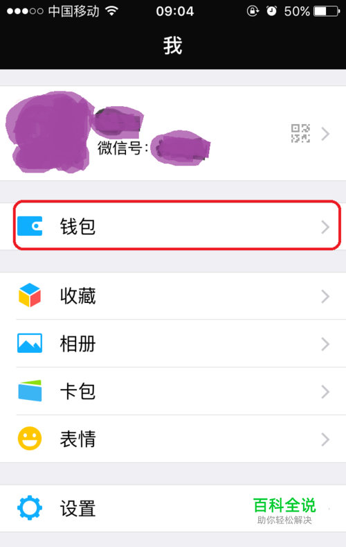 打开微信,选择下方“我”。点击“钱包”,如图。