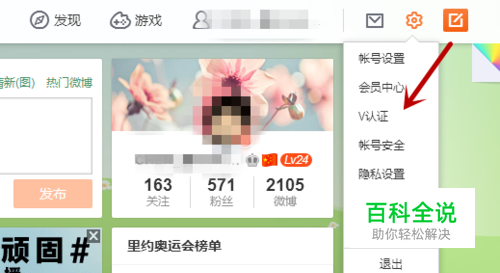 登录企业微博,点击右上角的“设置”按钮,找到“V认证”。