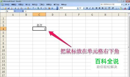 比如我们要输入连续的数字,我们可以在单元格中先输入一个数字,然后把鼠标放在单元格右下角,鼠标变为黑色十字时,我们按住鼠标向下拖动!