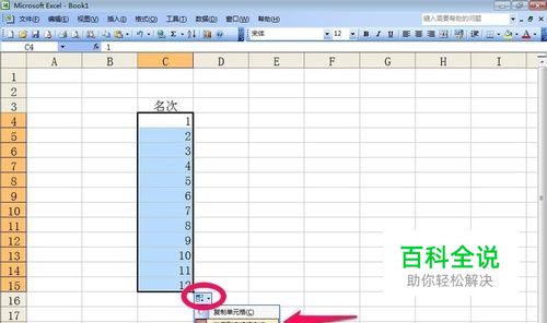 拖动一定区域后,我们松开鼠标,在单元格的右下角会出现一个小窗口,我们点击小窗口,然后选择以序列方式填充,这样我们连续的数字就输入成功了!