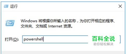 1、首先使用组合快捷键 Win + R 打开开运行面板,然后输入命名:powershell 并点击 确定 进入,如图。