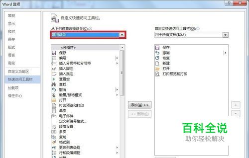 在选项设置对话框中,点击左边的“快速访问工具栏”。