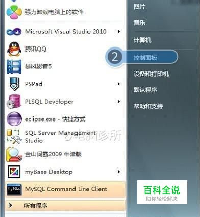 鼠标点击【开始】→【控制面板】,如图所示: