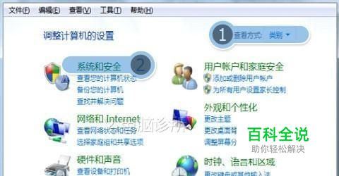 将查看方式设置为【类别】,然后点击【系统和安全】,如图所示: