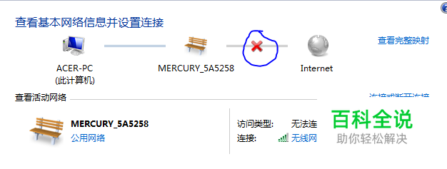 当大家连接无线时,很有可能出现连接无线成功,但是出现黄色感叹号不能上网的问题。这就很纠结了,在这里我告诉大家一个快速解决的方法,这个只是个特例,如果实验两次仍不成功,请仔细检查连接设备等其他问题。在连接信息会有这样的情况,并且连接情况为:这个方法是利用360安全卫士来修复。首先你可以点击我上图标出的红叉,如果解决了,你就不需要往下看了,如果出现下列情况