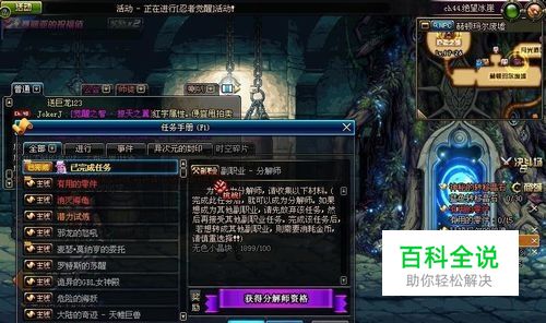 在角色升级 到20级的时候,会自动出现副职业的转职任务,这时候你需要选择你自己的副职业,当然你也可以选择其它的副职业。现在为你介绍任务流程,炼金术师的转职第一个任务,与其它转职任务相同都是100个无色。
