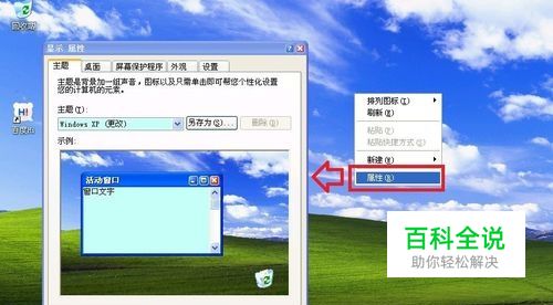 右键点击桌面空白处→属性→显示属性