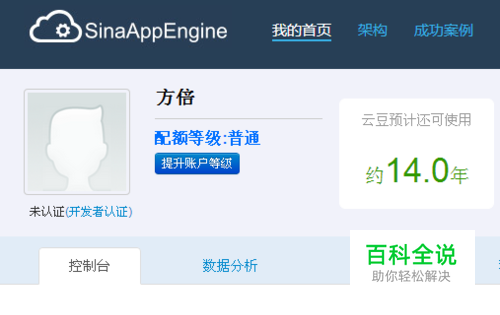 创建新浪云计算应用 我们使用SAE新浪云计算平台作为服务器资源,并且申请PHP环境+MySQL数据库作为程序运行环境。使用新浪微博账号可以直接登录SAE,登录后SAE将赠送500个免费云豆。