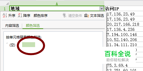 点击颜色筛选后,页面会显示出表格中所有的颜色,我们点击想要筛选出的颜色。
