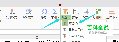 接着我们点击菜单栏上的“开始——筛选——筛选”,如图