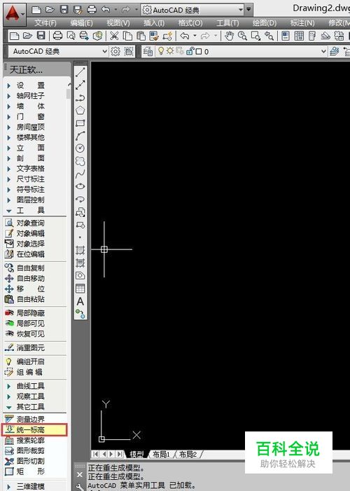 统一标高用于整理二维图形,包括天下平面、立面、剖面图形,使绘图中避免出现因错误的取点捕捉,造成各图形对象Z坐标不一致的问题。