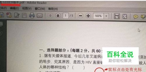 用adobe reade打开扫描版的《2016广东中考数学真题—扫描版本》,我们将鼠标在指定位置点击下,我们看不到闪动的光标。