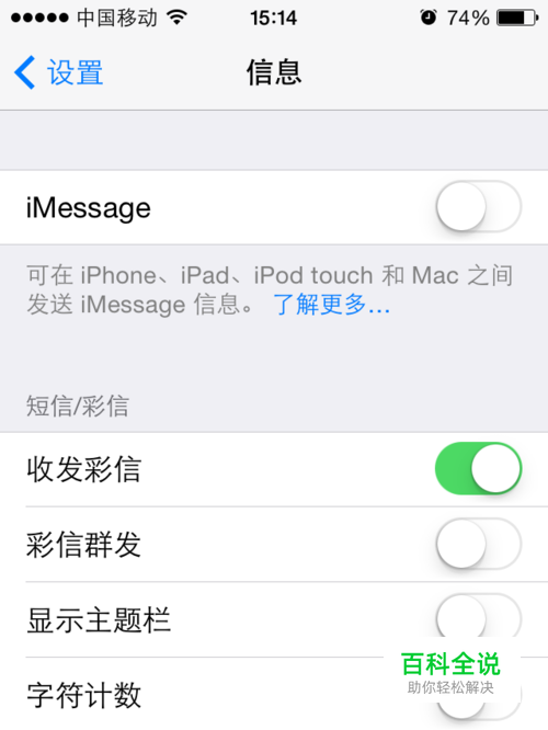 如果我们基本不使用iMessage的话,可以直接关闭,这样就不会收到邮箱地址垃圾短信,但也无法收到ipone好友的iMessage。