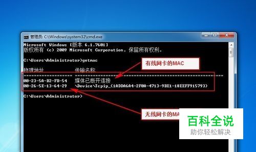 方法一、输入字符串:getmac ,按下回车键,即可得到电脑的mac地址,笔记本电脑一般会有两个,一个是无线网卡的,一个是有线网卡的。你用哪种方式连接,就记下哪个的mac地址,注意:中间的横线不能省。