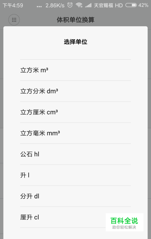 如图所示,立方米,升,立方英尺之类众多的单位就出现了,切换到不同的单位,下方会显示彼此之间