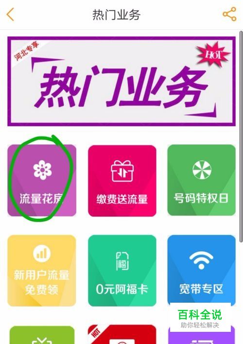 四种花朵都种好开花后,就可用花朵兑换流量了。点击左上角“流量花房”。