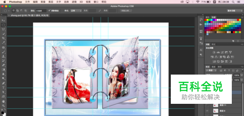 现在是不是已经有点感觉了呢,接下来又会用到参考线,因为要将图像进行变形,至于放在什么地方大家看完就知道了,将刚才拖进去的照片再复制两层,进行变形,整好就是这样的
