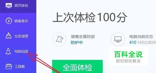 首先我们在电脑上双击电脑管家的图标,打开电脑管家主界面后,点击左侧边栏的“电脑加速”菜单项。