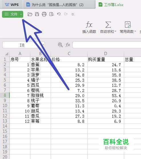 首先我们使用wps office2019打开一个表格,然后点击左上角的文件图标,如下图所示,