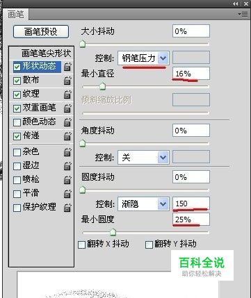 形状动态选项 注意“控制”属性里边一定要是“渐隐”哦。