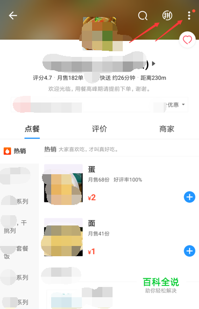 在手机上打开饿了吗APP,选择一家确定要点的店,然后点击右上角的“拼”或者右侧的三点。