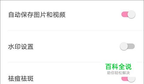 此时就可以打开轻颜相机设置列表了,从中可直接看到“水印设置”选项,找到后我们可以知道其后面的锁定按钮是粉色的,证明添加水印的功能是打开着的,点击此粉色按钮