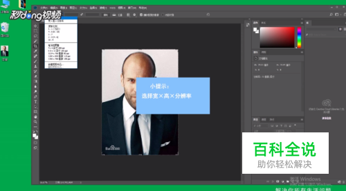 打开ps,选择裁剪工具,在顶部的下拉选项中选择宽✖高✖分辨率。
