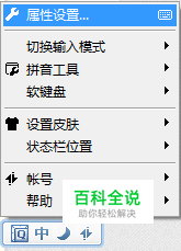 属性设置 在输入法的状态栏上单击鼠标右键,选择【属性设置】