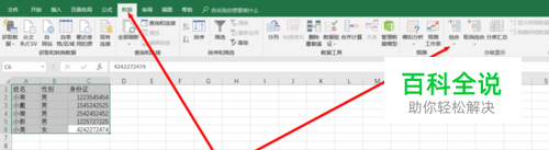 选中后,点击【数据】然后点击红色箭头处的【组合】下面的小三角形状即可。