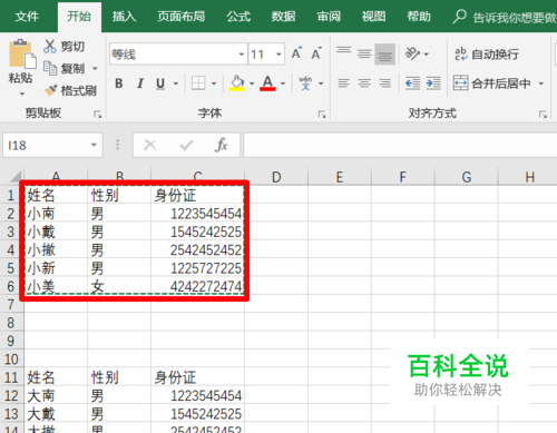 打开excel,已经编辑好了俩部分内容,我们以折叠第一部分的内容为例子进行操作。选中所要折叠的内容。