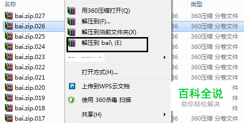 我们还可以使用压缩解压,将它解压出来,解压的时候,使用其中任意一个分卷文件就可以完成完整的解压操作。