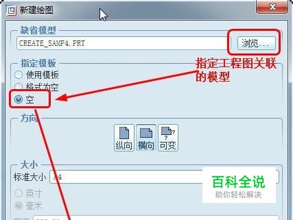 指定关联模型和图纸大小