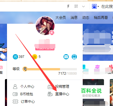 首先我们把鼠标移到我们的B站头像那里,移到即可