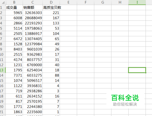 然后选中需要更改单位的那列数据,如下图所示,我需要更改的是销售额这列数据,想将这列数据以万单位显示,只需要先选中这列数据。