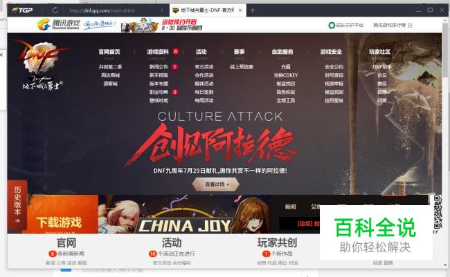 首先进入DNF官方网站,可以在网页上进入,也可以通过TGP进入官方网站。
