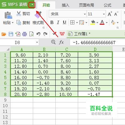 单击“wps 表格”左上角的倒三角。