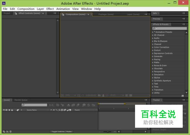 在桌面上找到AE的快捷图标,双击打开AE这款软件,进入AE的操作界面,如图所示: