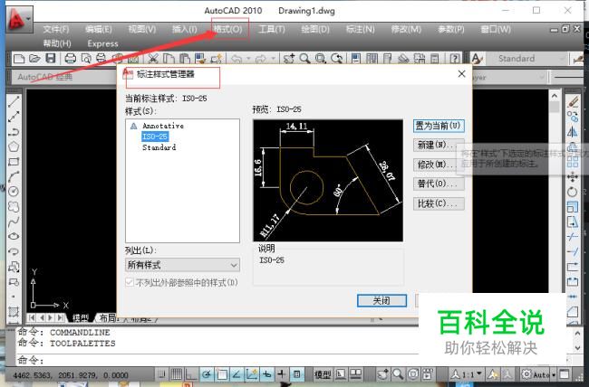单机"标注"工具栏的标注按钮,或者点击格式→标注样式[或者(标注→标注样式)]系统将会弹出标注样式管理器。