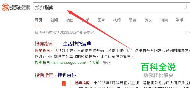 进入搜狗指南官网,点击搜索结果中的“搜狗指南--生活技能宝典”