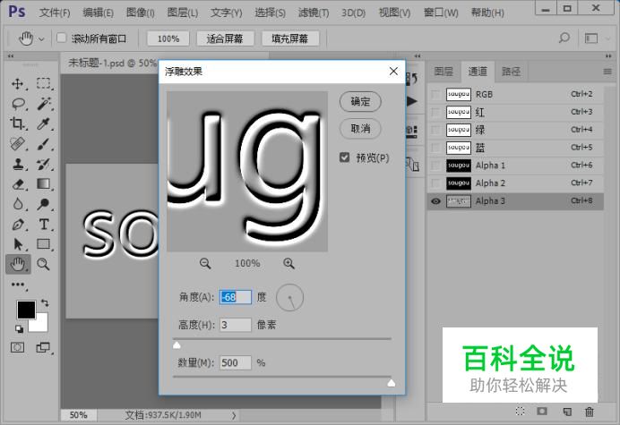 按住Ctrl键点击文字图层的缩略图调出选区;然后,选择选区工具,在选区上鼠标右键选择“存储选区”;接着,我们命名通道为“Alpha 1”。