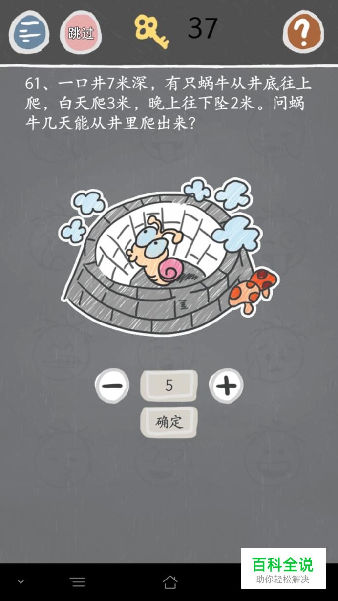 第六十一关:根据题干,我们得出结果应是(7-3)÷(3-2)+1=5,所以是[5天]。