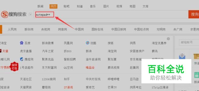 想要学好编程,有一个称手的工具是非常重要的。所以我们先下载noteoad++软件。首先我们打开浏览器,在搜狗搜索里输入“notepad++”。如图所示: