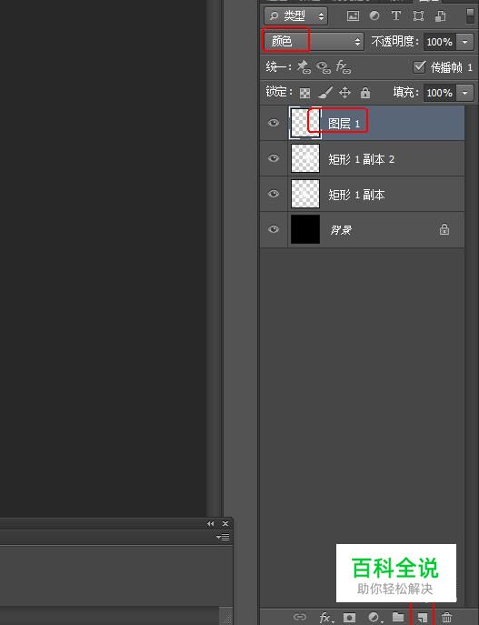 在“图层面板”下方点击“创建新图层”按钮,得到“图层1”图层并将其“混合模式”更改为“颜色”