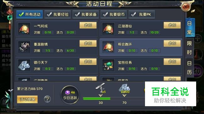 进入活动日程界面,找到帮会跑环参加。