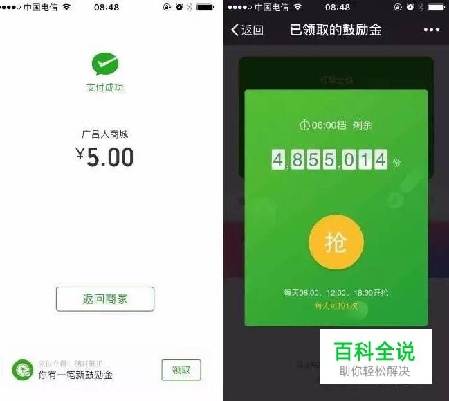 微信支付后会跳出一个抢鼓励金的图片,然后你点击抢即可抢到鼓励金