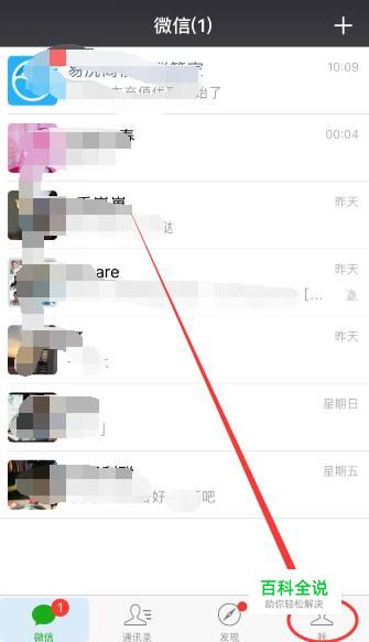 点击进入了微信之后,我们会进入到微信的“微信”界面,这时我们需要在界面的右下角找到并点击“我”。